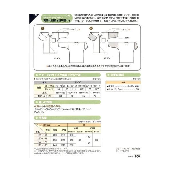 パターン 型紙 親子 はんてん 簡単 実寸大 実物大 作り方 レシピ 大人 メンズ 男 服 洋服 シャツ 6515 手芸のピロル ヤフーshop 通販 Yahoo ショッピング